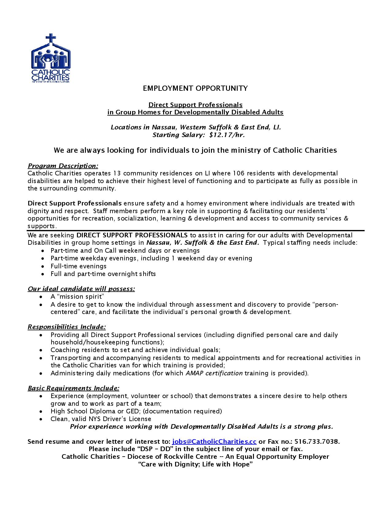Adelphi University Career Center On Twitter Catholic Charities Will Be Hosting A Recruiting Event Where Those Interested In Direct Support Professional Employment In Their Residential Services Program For Developmentally Disabled Adults Will